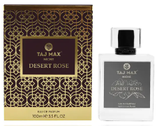 TAJ MAX Desert Rose is a luxury Arabic perfume that features a complex blend of marine, woody, and spicy accords, with heart notes of mandarin, freesia, and black currant, and base notes of white cedar, musk, vetiver, frankincense, and patchouli. It is a long-lasting, oil-based fragrance inspired by Dubai's perfumery culture and is known for its richness and elegance