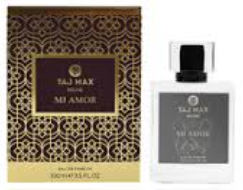 Taj Max "Mi Amor" is a unisex, long-lasting perfume inspired by Dubai's perfumery culture, made with natural and essential oils. It has an oriental scent profile with top notes of ambrette, hibiscus, and cinnamon; heart notes of blackcurrant leaves and skin; and a base of vanilla, mint, and rose. This fragrance is marketed as a high-potency, luxury scent designed to be sophisticated and long-lasting, lasting from 12 to 48 hours.